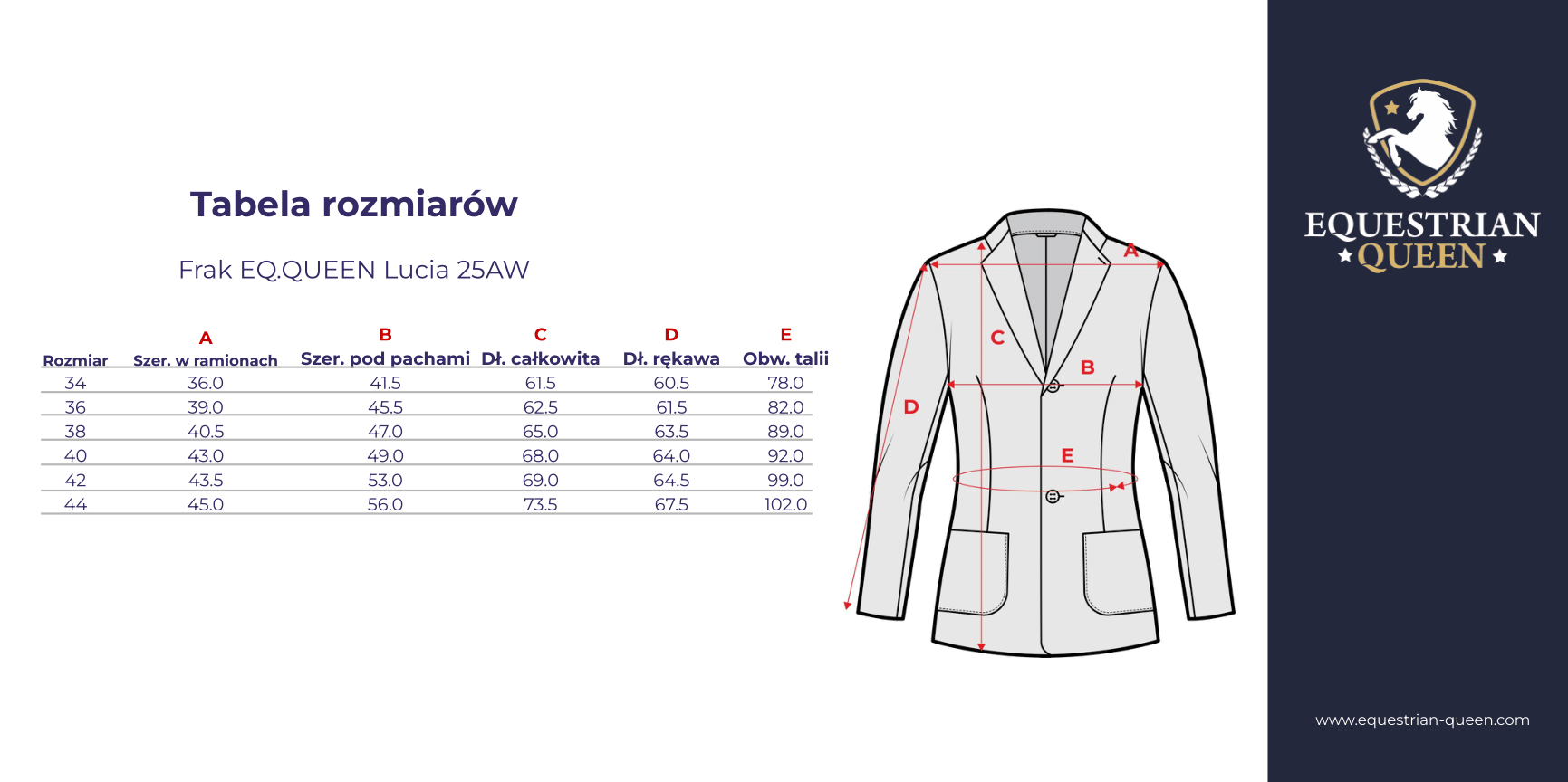 Zapinany na cztery guziki i zdobiony rzędem subtelnych kryształków na kieszeniach oraz kryształowymi guzikami, ten frak łączy elegancję z nowoczesnym stylem. Doskonały wybór na zawody, ale także na specjalne okazje, kiedy chcesz poczuć się jak prawdziwa Królowa stajni!