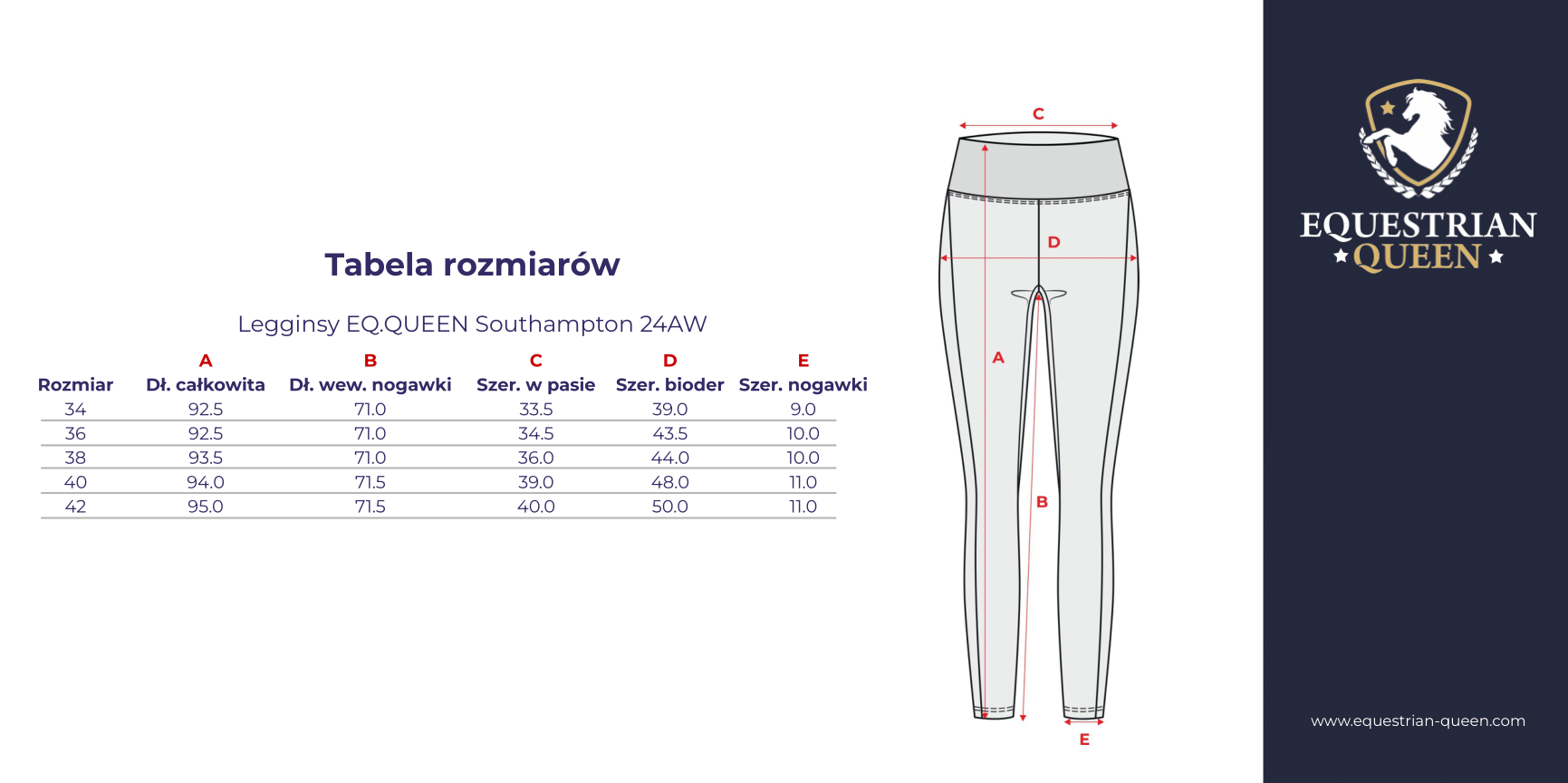 Legginsy EQ.QUEEN Southampton 24AW damskie wyróżniają się na tle innych dzięki połączeniu wygody, funkcjonalności i stylu. Wykonane z wysokiej jakości materiałów, zapewniają niebywałą wygodę i doskonałą przyczepność, co czyni je idealnym wyborem zarówno do codziennej jazdy, jak i na zawody. Dzięki szerokiej gamie modeli dostępnych w ofercie, każda jeźdźczyni znajdzie coś dla siebie. Niezależnie od tego, czy szukasz czegoś klasycznego, czy nowoczesnego, legginsy EQ.QUEEN Southampton 24AW damskie spełnią Twoje oczekiwania, dodając pewności siebie podczas każdej jazdy.
