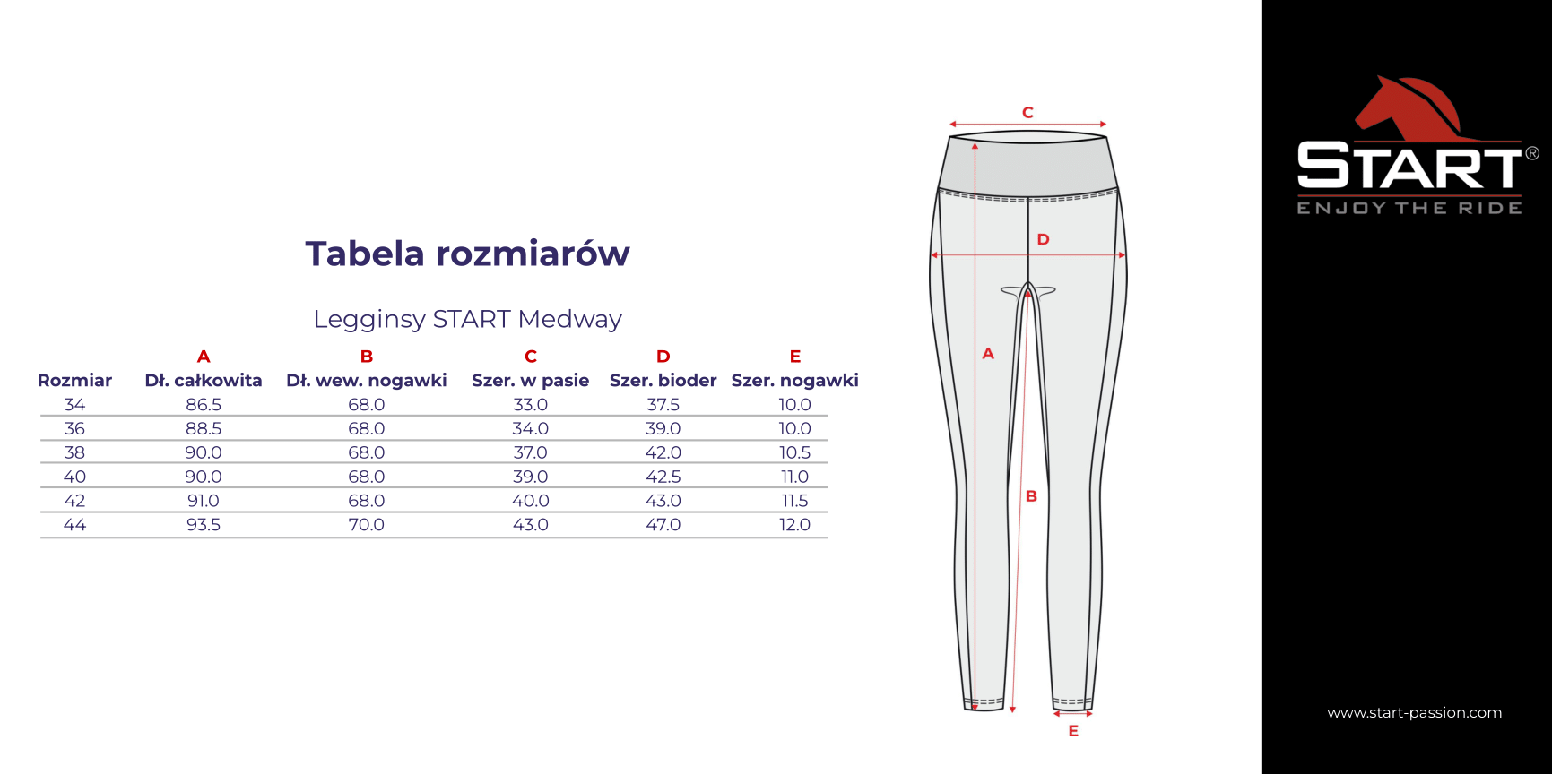 Szeroki pas z logo START podkreśla talię i zapewnia idealne dopasowanie, a dodatkowa kieszonka boczna ozdobiona delikatnym logotypem umożliwia przechowywanie drobnych przedmiotów, takich jak telefon czy kluczyk. Pełny lej silikonowy gwarantuje stabilność i pewność w siodle, pozwalając skupić się na jeździe.