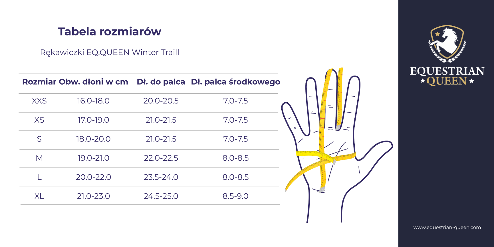 Co więcej, cała wewnętrzna strona dłoni pokryta jest silikonowym gripem z antypoślizgowego materiału, aby ułatwić trzymanie wodzy, czy innego sprzętu jeździeckiego. To szczególnie ważne podczas jazdy konnej, gdzie precyzja i pewność chwytu są niezwykle istotne. Rękawiczki EQ.Queen są zdobione złotymi printami, co nadaje im charakteru. Z kolei specjalne wstawki na palcach sprawiają, że podczas noszenia rękawiczek jest możliwe korzystanie z ekranów dotykowych urządzeń, takich jak telefon komórkowy.