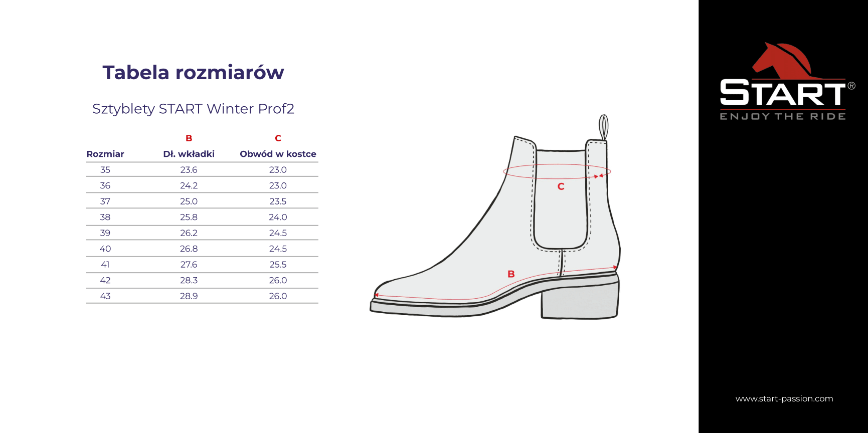 Te uniwersalne buty do jazdy konnej świetnie sprawdzają się w zimowych warunkach, zapewniając ochronę i ciepło podczas każdej aktywności. Sztyblety zimowe START Winter Prof2 to niezawodny wybór, który spełni oczekiwania nawet najbardziej wymagających jeźdźców, łącząc klasyczną elegancję z funkcjonalnością.